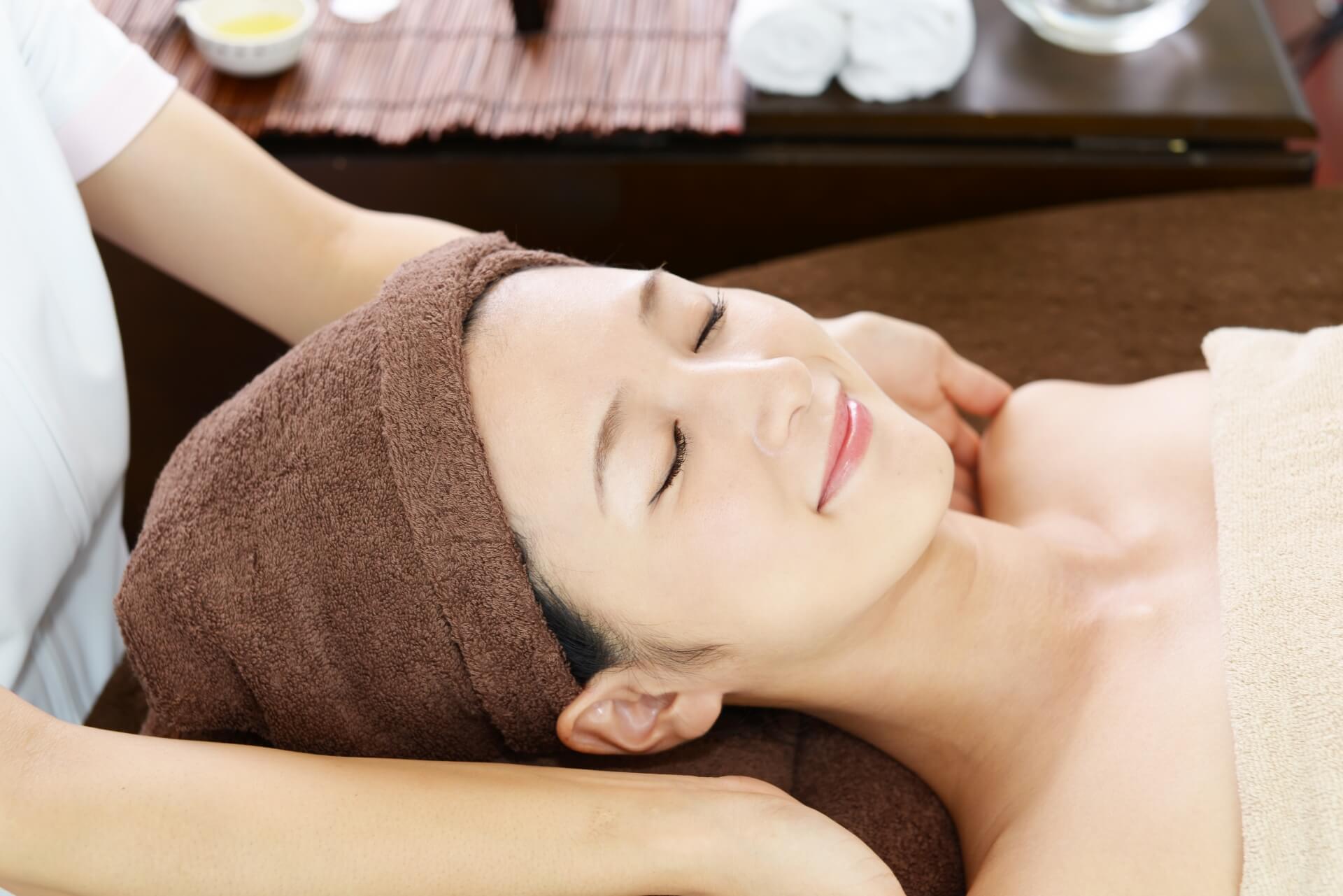 フェイシャルエステは首から顔をマッサージし、むくみやたるみを解消してリフトアップと小顔効果をもたらします。眼精疲労や噛みしめの改善にも効果的です。